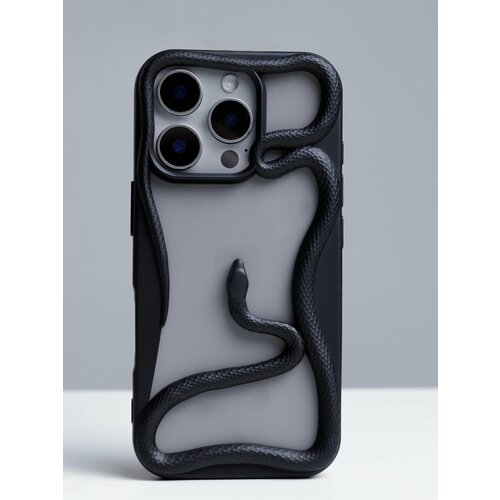 Чехол черного цвета на iPhone 17 Pro с змеиным принтом, пластик