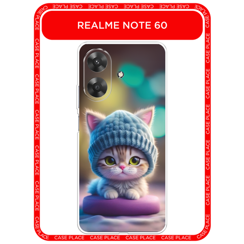 Чехол на Realme Note 60/60X / Реалми Нот 60/60X с принтом Котик в голубой шапочке