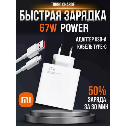 Сетевой блок питания с кабелем XIAOMI 67 ватт USB TYPE-C 67 watt быстрая зарядка
