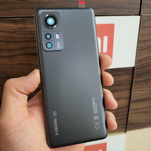 Крышка для Xiaomi 12 - оригинальная задняя стеклянная панель (чёрного цвета)