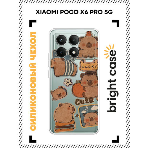 Чехол на Xiaomi Poco X6 PRO 5G / Поко X6 Про 5G с принтом Милые капибары, прозрачный