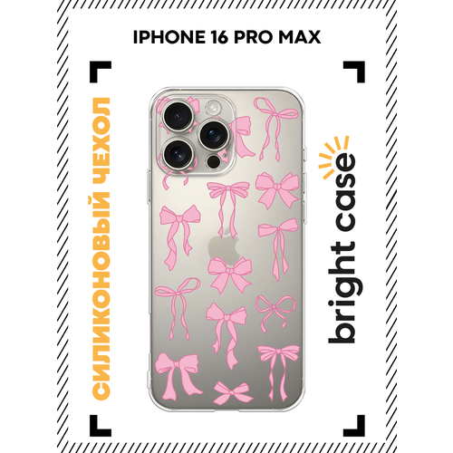 Чехол на Apple iPhone 16 Pro Max / Айфон 16 Про Макс с принтом Розовые бантики, прозрачный