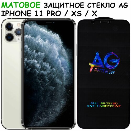 Защитное стекло матовое для iPhone X/Xs/11 Pro/ айфон икс/ икс с/ 11 про Черное (Полное покрытие)