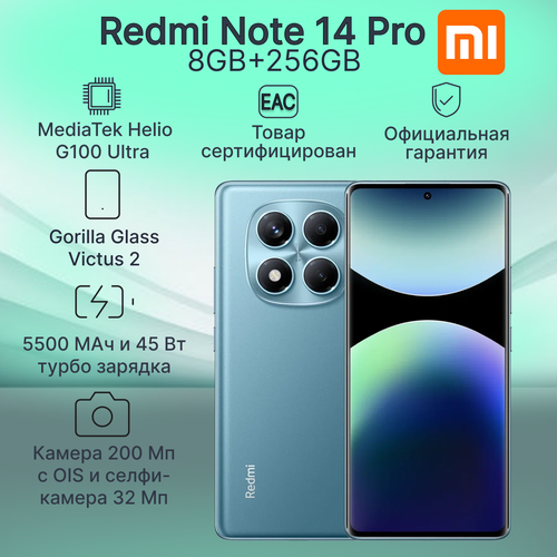 Смартфон Xiaomi Redmi Note 14 Pro 8GB+256GB Ocean Blue Ростест