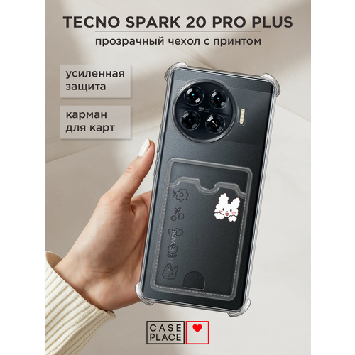 Чехол на Tecno Spark 20 Pro Plus (Текно Спарк 20 Про Плюс) с картой и принтом Пушистый белый зайчик