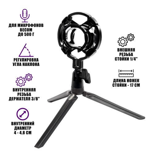 Настольная стойка трипод NK-12 для микрофона с держателем паук