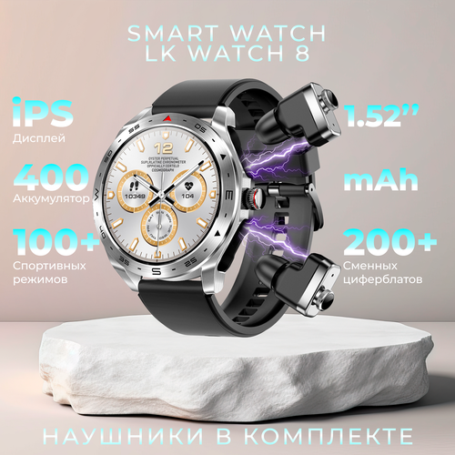 Смарт часы LK watch 8 с беспроводными наушниками, серебро