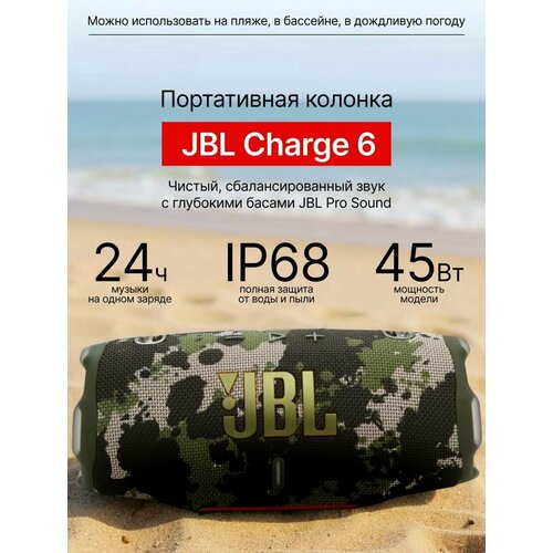 Беспроводная колонка JBL Charge 6, влагозащита IP68, хаки