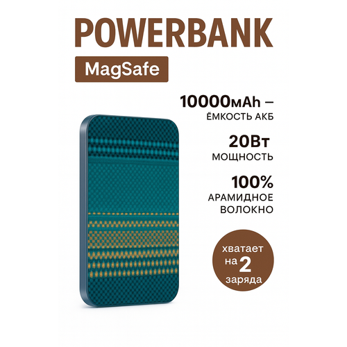 Внешний аккумулятор Keephone kevlar Brendy MagSafe Power Bank 10000 mAh для iPhone, 20/15w- синий