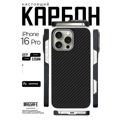 Чехол карбоновый для iPhone 16 Pro (с поддержкой беспроводной зарядки), сверхпрочный, лёгкий