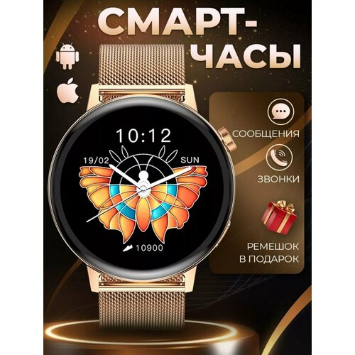 Смарт часы женские круглые smаrt wаtch / умные часы наручные с функцией звонка / смарт-часы золотистые/ 3 ремешка в комплекте
