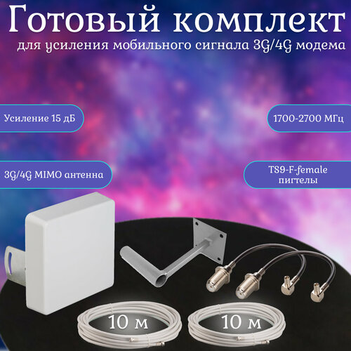 Усилитель интернет сигнала 2G/3G/WiFi/4G антенна KNA21-700/2700F+кабель+пигтейлы TS9
