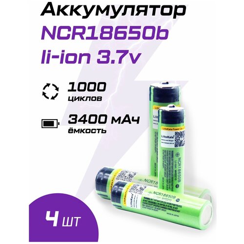 Аккумулятор Li-Ion 3400 мА·ч 3.7 В LiitoKala NCR18650B выпуклый на плюсе, 4 шт.