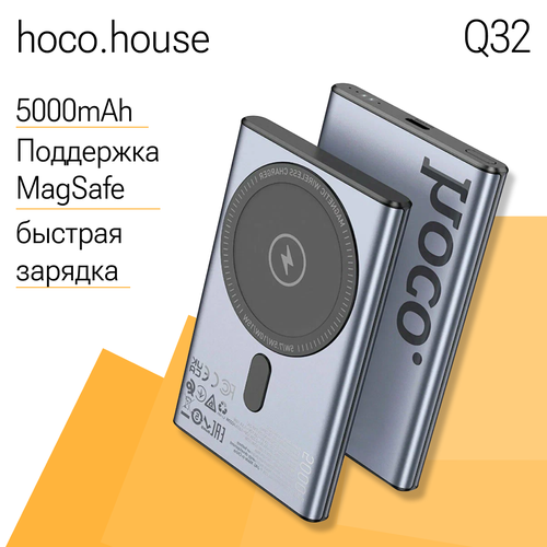 Аккумулятор HOCO Q32, беспроводной, магнитный, PD20W, 5000mAh, для быстрой зарядки, металлический, серый