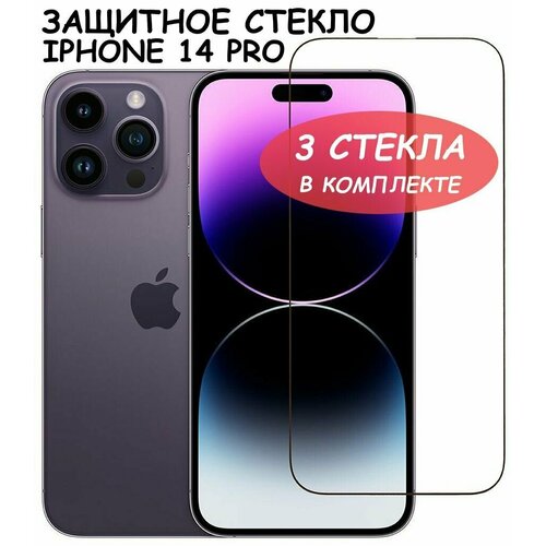 Защитное стекло для iPhone 14 Pro / айфон 14 про Черное (Полное покрытие) - 3 стекла в комплекте