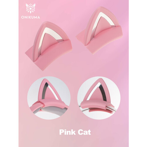 Накладные кошачьи ушки для наушников Pink Cat розового цвета из силикона 2 шт.