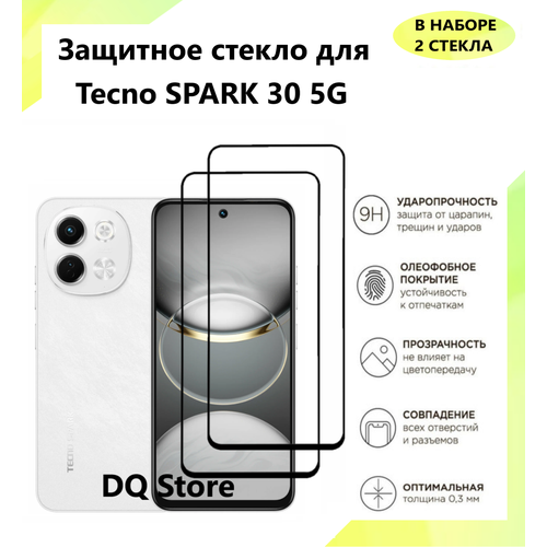 2 Защитных стекла для Tecno Spark 30 5G / Техно Спарк 30 5Джи . Полноэкранные защитные стекла с олеофобным покрытием