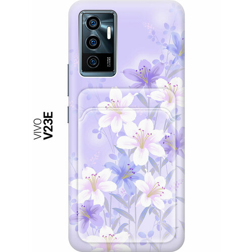 Чехол с карманом для карт на Vivo V23e, Виво В23е с принтом "Лилии на фиолетовом"