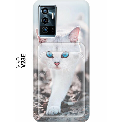 Чехол с карманом для карт на Vivo V23e, Виво В23е с принтом "Голубоглазый кот"