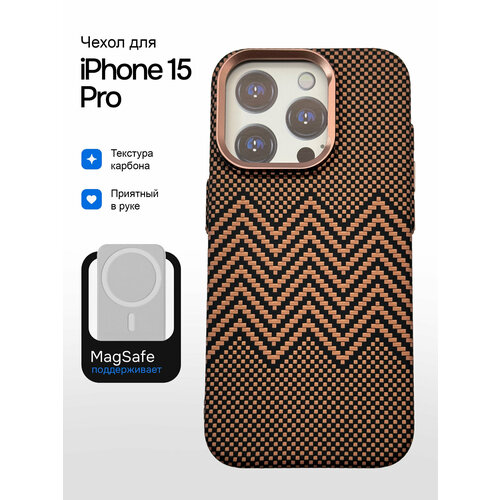 Чехол на Айфон 15 Pro, ударопрочный, карбоновый, с поддержкой беспроводной зарядки MagSafe