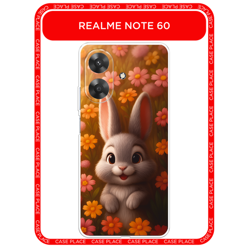 Чехол на Realme Note 60/60X / Реалми Нот 60/60X с принтом Серый зайка на лугу