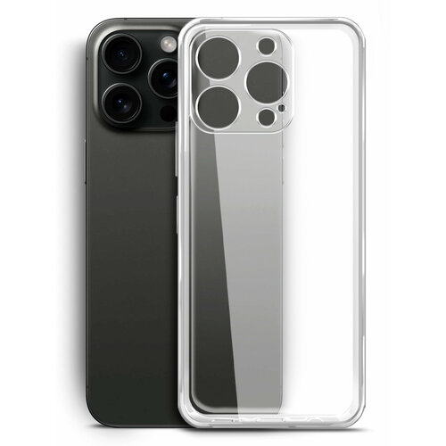 Чехол на Apple iPhone 15 Pro Max (Эпл Айфон 15 про макс), прозрачный силиконовый с защитой (бортиком) вокруг камер, Brozo