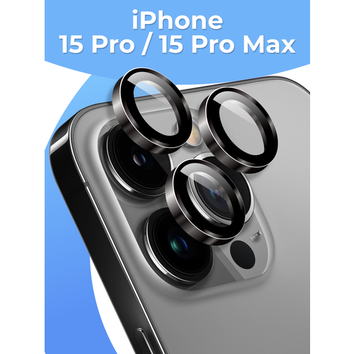 Стекла (линзы) для камеры на iPhone 15 Pro / iPhone 15 Pro Max, Набор стекол 3шт. на камеру Айфона, Графит