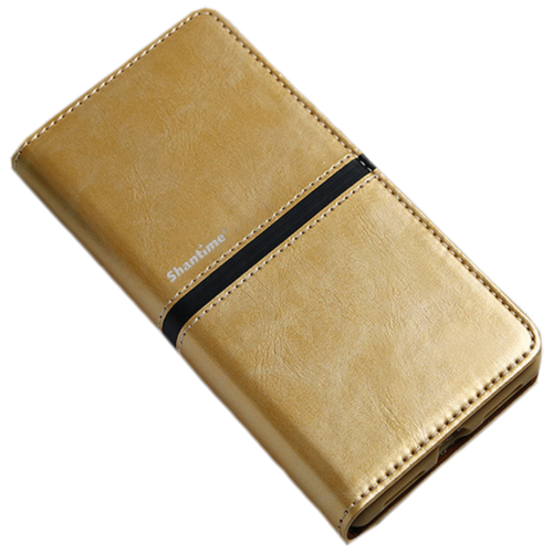 Чехол-книжка MyPads для ZTE Blade 20smart водоотталкивающий с мульти-подставкой на жесткой металлической основе золотой с черной полосой