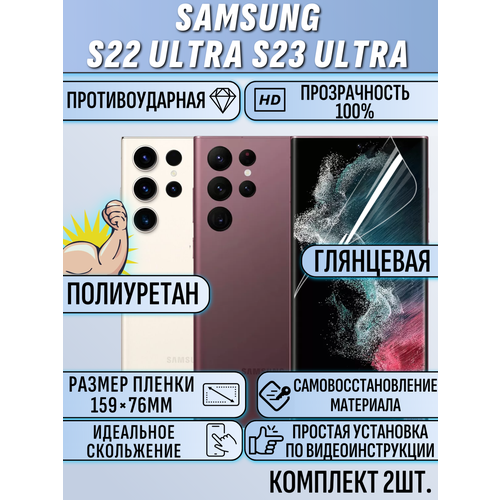 Гидрогелевая пленка на Samsung S22 Ultra S23 Ultra глянцевая на весь экран 2шт