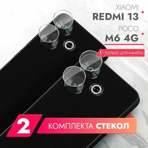 Защитное стекло на Камеру для Xiaomi Redmi 13/ POCO M6 4G , 2 штуки, (гибридное: пленка+стекловолокно), прозрачное силиконовая клеевая основа тонкое Hybrid Glass, Brozo
