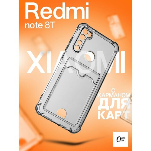 Прозрачный Чехол на Xiaomi Redmi Note 8T с карманом для карт, серый