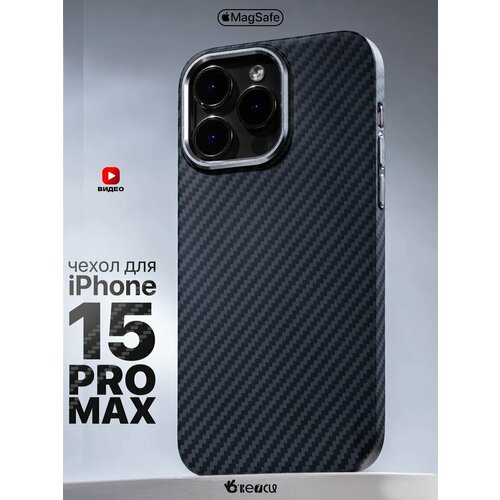 Чехол О'кейси, для iPhone 15 Pro Max, карбоновый, чёрный, MagSafe
