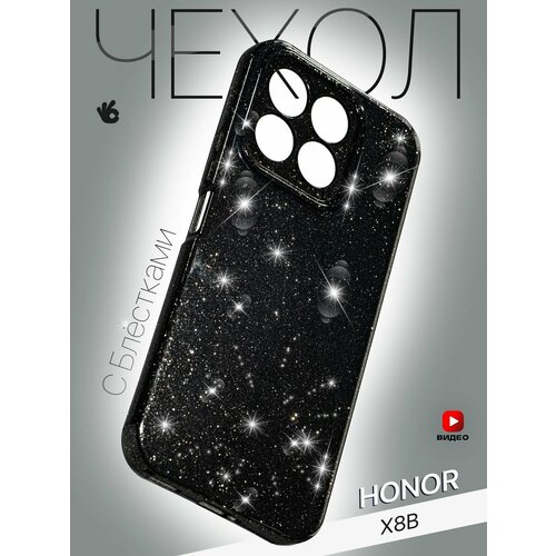 Чехол на Honor X8b с блестками, с защитой камеры силикон