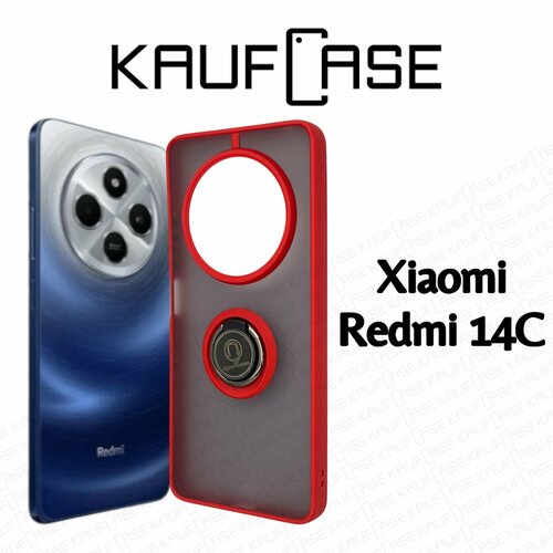 Чехол бампер для телефона Xiaomi Redmi 14C (6.88"), красная рамка. Кольцо-держатель