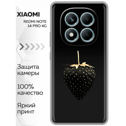 Чехол для Redmi Note 14 Pro 4G с принтом Черная клубничка (Редми Нот 14 Про 4G)
