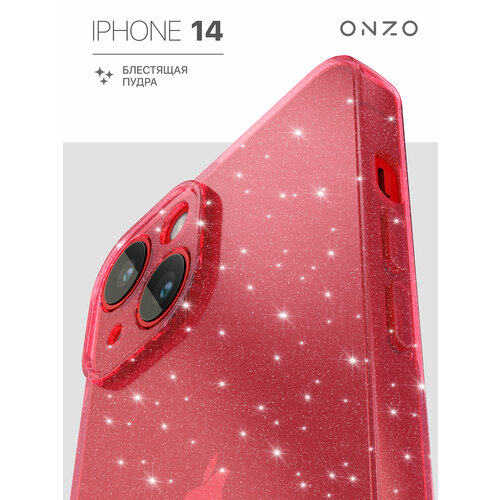 Блестящий чехол для iPhone 14 / Айфон 14 с поддержкой беспроводной зарядки, красный прозрачный