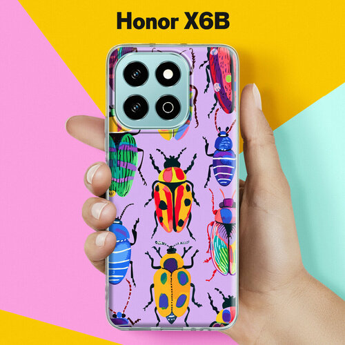 Силиконовый чехол на Honor X6B с принтом "Жуки" с прозрачными бортиками