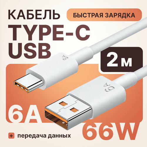 Кабель 6 ампер для быстрой зарядки телефонов и планшетов Xiaomi Honor Huawei USB Type-C 6A 2 м