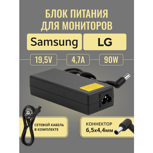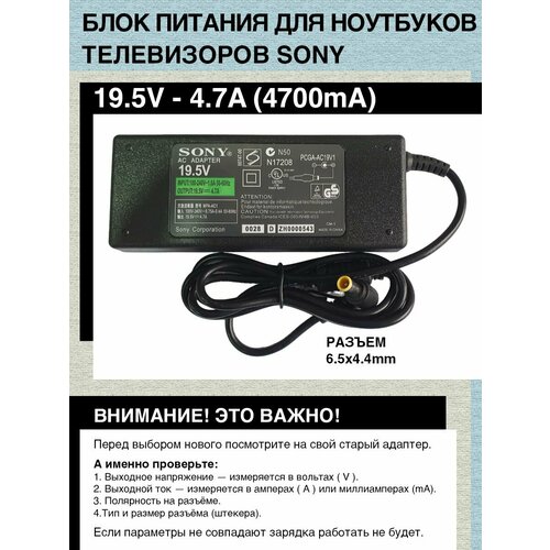 Блок питания зарядка 19.5V, 4.7A, 90W, 6.5mm x 4.4mm для телевизоров Sony Bravia, ноутбуков Sony Vaio