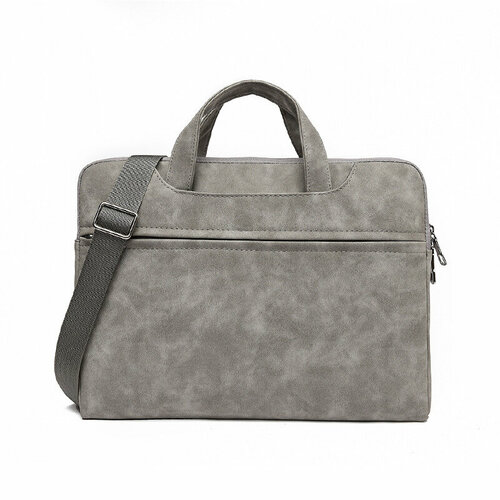 Сумка для ноутбука макбука 14-15 дюймов с плечевым ремнем, серая (MAXSVETSHOP)