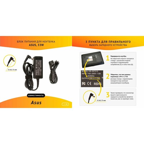 Power supply / Блок питания для ноутбука Asus 19V 1.75A, 33W 5.5x2.5mm