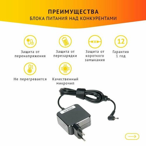 Блок питания БП для ноутбука Asus 19V, 2.37A, 45W, 4.0x1.35 с кабелем, OEM