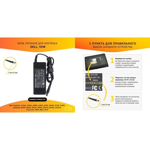 Power supply/Блок питания для ноутбука Dell Inspiron 510m, 630m, 6000, 6400, 8500, 8600, 9200, 9300, Latitude D500, D600, D630, без сетевого кабеля