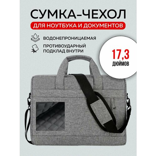 Сумка чехол для ноутбука 17.3 дюйма, противоударная, водонепроницаемая, серая