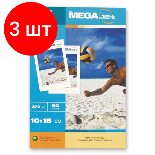 Комплект 3 штук, Фотобумага для цв. струй. печ. ProMEGA jet (10х15, 270г, глянцевая) пачка 50л