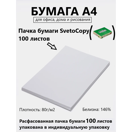 Бумага А4 для офисной техники Svetocopy 100 листов Sylvamo для печати, принтера , в индивидуальной упаковке