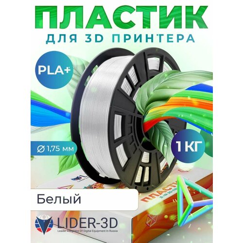 PLA+ пластик LIDER-3D для 3D принтера 1.75 мм, Белый, 1 кг
