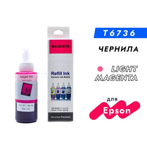 Чернила для принтера Epson T6736 (C13T67364A), серия L: L800, L805, L810, L850, L1800, Light Magenta (светло-пурпурный), Dye, 100 мл