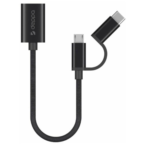 OTG адаптер USB - micro USB + USB-C, алюминий, нейлон, 0.15 м, Deppa 72319