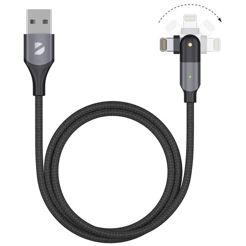 Дата-кабель USB-A - Lightning, поворотный, 180˚, USB 2.0, 2,4A, 1.2м, алюминий, нейлон, Deppa 72326